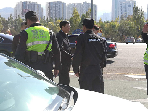 田树槐简单听取了正在执勤的市公安局巡特警支队二大队教导员刘庆、突击队副大队长常亮等一线特警队员的工作汇报,对大家警容严整、精神饱满全力保卫党的十九大所付出的艰辛努力,予以高度评价。他说:“党的十九大正在首都召开,这是一次举世瞩目的盛会。十九大安保工作,是当前压倒一切的政治任务、头等大事。全市各级公安机关和广大公安民警连续奋战、昼夜兼程、无私奉献、毫不懈怠,为保证十九大胜利召开,营造了良好的社会治安环境,奠定了坚实的物质基础,这点全市人民有目共睹。在此,我代表市委、市政府,向战斗在安保前线的公安民警和警辅人员,表示亲切的慰问!希望大家鼓足干劲,精益求精,顽强拼杀,勇创佳绩!”当了解到市公安局每天在小堡工作站配置近30名警力、采取24小时全天候查控模式时,田树槐关切地向在场队员说:“你们任务艰巨,责任重大,使命光荣。大家要劳逸结合,注意休息。天气变凉了,大家要注意保暖。同时,要注意自身安全。”