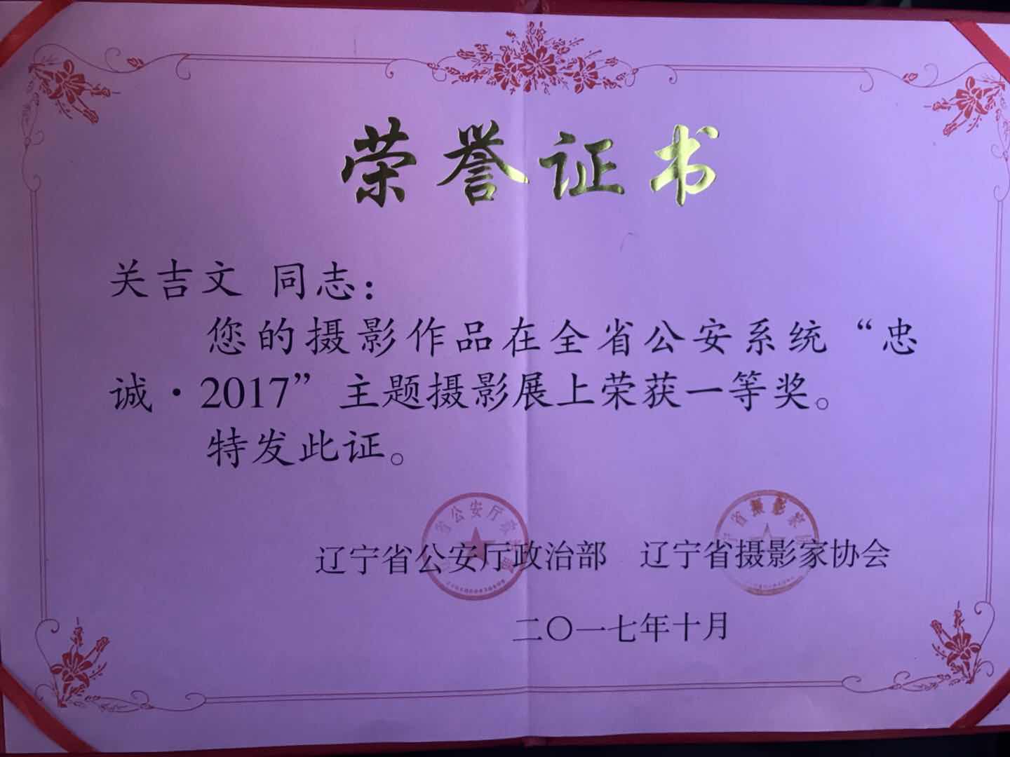 关吉文参展摄影作品“月圆之夜”,反映了本溪交警在十九大安保中忠于职守,勇于拼搏的奋斗精神,体现了本溪交警特别能战斗和特别能奉献的工作作风,受到了参与主题摄影展领导和同志们的高度评价。